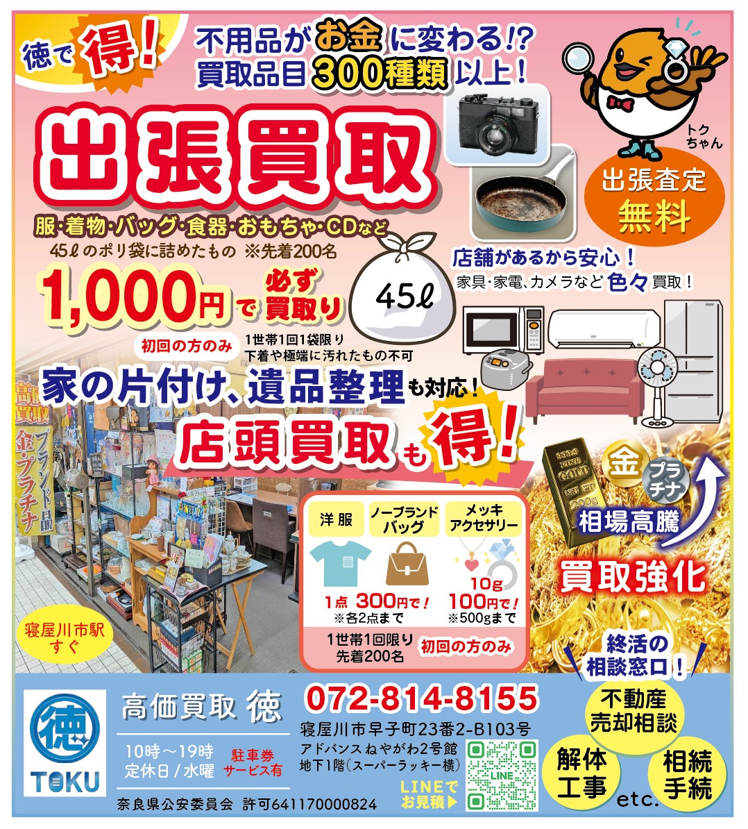 「買取品が1点だけ」「状態が悪い」「相談・査定だけ」でも全く問題ございません。